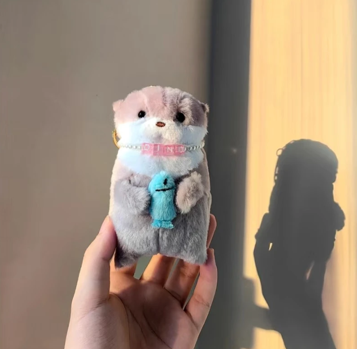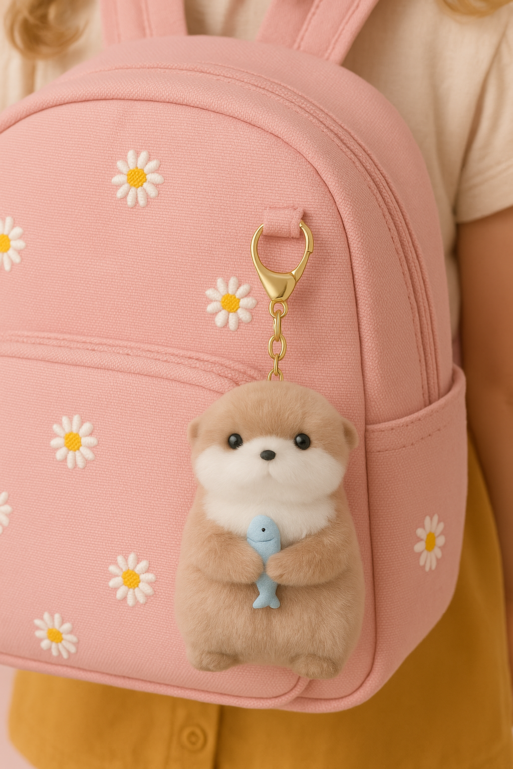 Dieser flauschige kleine Otter ist nicht nur ein echter Hingucker, sondern hält auch einen lächelnden Fisch in seinen kleinen Pfötchen – einfach zum Verlieben! Perfekt als Geschenk für Tierliebhaber, für den Schulranzen, die Handtasche oder den Autoschlüssel.